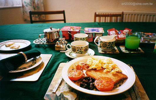 The very typical English breakfast--about what you'll get in every B&B in the morning.