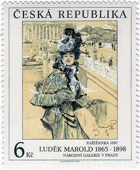 在布拉格買的美麗郵票, 紀念十九世紀捷克畫家Ludek Marold. 儘管是90年代出品, 看起來卻古意盎然. Kc(克朗)是捷克貨幣單位, 和新台幣的幣值很接近.